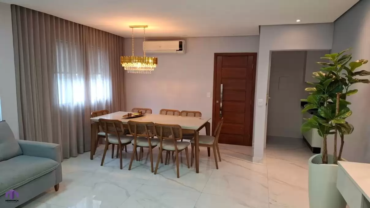 Apto 3 quartos sendo um suíte, sala, banho social, cozinha, área de serviço, varanda grande gourmet, instalação para ar condicionado nos quartos, água quente nos banheiro e cozinha, medição de água individual, acabamento de alto padrão, ótima localização, 2 vagas de garagem, elevador.